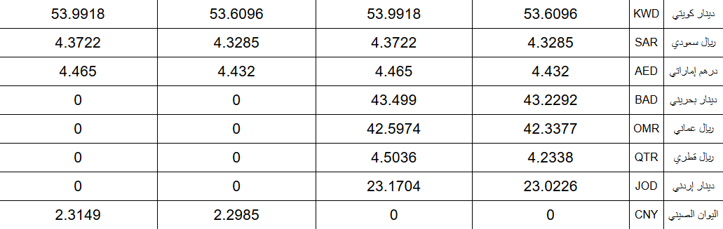 | بنك البركة | 17.09 | 17.38 | 10 ساعات |
