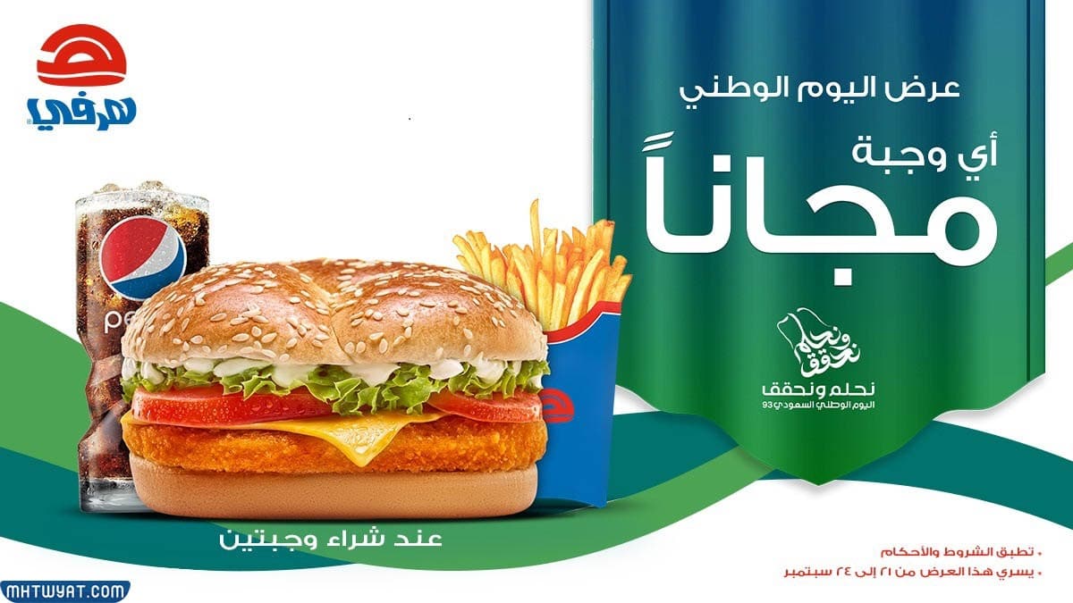 | عرض خاص لليوم الوطني | أي وجبة مجانية عندما تحصل على وجبتين | عبر فروع هيرفي | لا تبقى الحرية والعرض بين 21 سبتمبر 2025 – 24 سبتمبر 2025 |