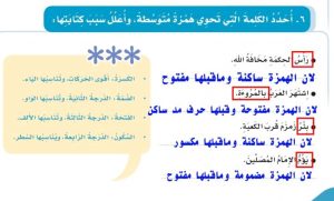 سؤال: ابحث عن الكلمة التي تحتوي على الهمزة في الوسط واشرح سبب كتابتها على هذا النحو