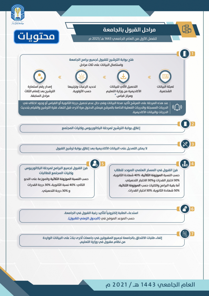 - الهوية الوطنية للطالب شرط من شروط إتمام عملية القبول.