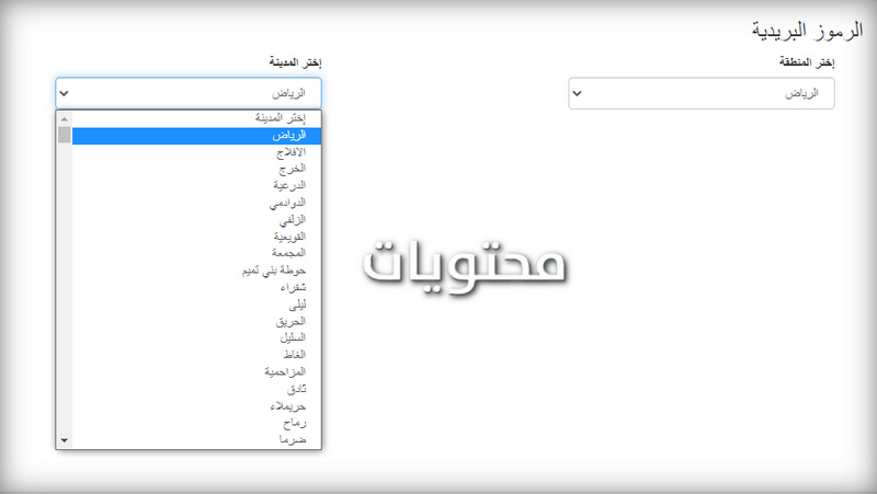 - انقر على مفتاح الدخول خلال اختيار المدينة ؛ سيتم عرض كافة الرموز البريدية لأحياء المدينة في قائمة كما هو موضح في الصورة أدناه.