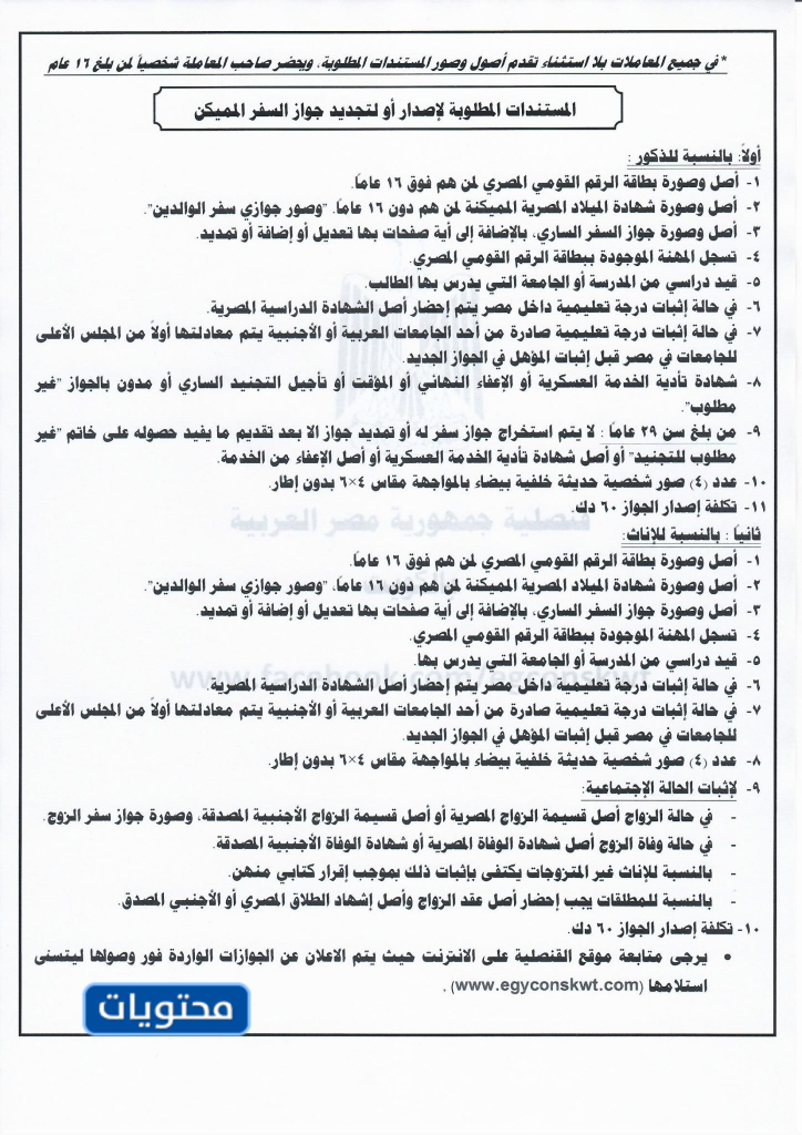 هناك عدد من المستندات التي يجب تقديمها للسفارة المصرية في الكويت عند إصدار أو تجديد جواز السفر المصري: