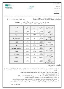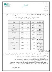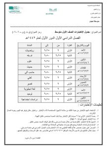 جدول الامتحانات المتوسطة بالمدارس السعودية 1442