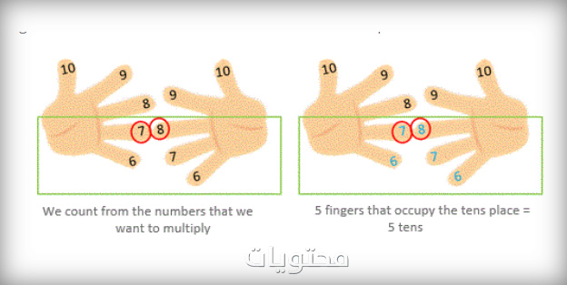 - يتم إعطاء أصابع كل يد بأرقام من 6 لـ 10 كما هو موضح في الصورة أدناه.