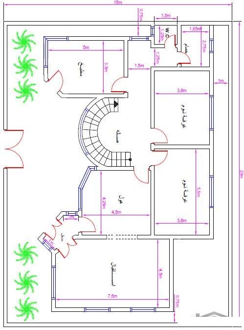 خرائط منازل 250 متر دور واحد