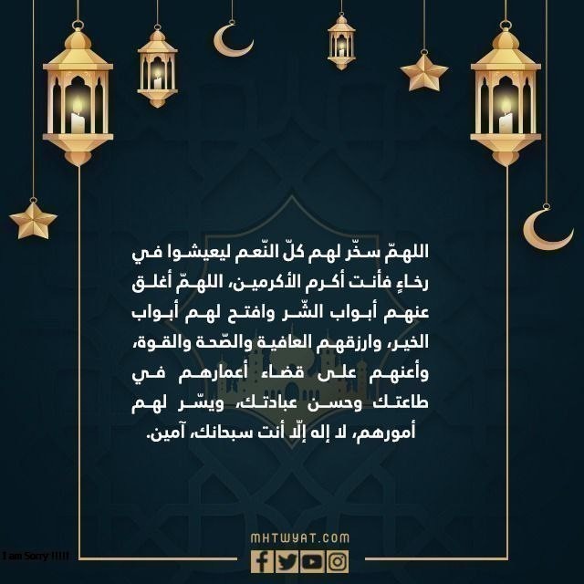 - اللهم إنّي أدعوك لأبنائي وأهلي بأن تحفظهم لي ولا تريني فيهم بأسًا يكسرني، اللهم ارزقهم العتق من النيران، واقسم لهم من الغفران ما تجعلهم بعده في زمرة الصالحين يا رب العالمين.