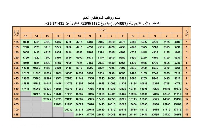 يتم صرف للموظفين العاملين في القطاعات المختلفة في المملكة العربية السعودية في اليوم السابع والعشرين من الشهر الميلادي بعد التعديلات الأخيرة لنظام الخدمة المدنية، وإن وافق موعد الصرف يوم جمعة، فسيتم صرف الراتب يوم الخميس، وإن كان موعد الصرف يوافق يوم السبت، فيتم صرف العلاوة في يوم الاحد.
