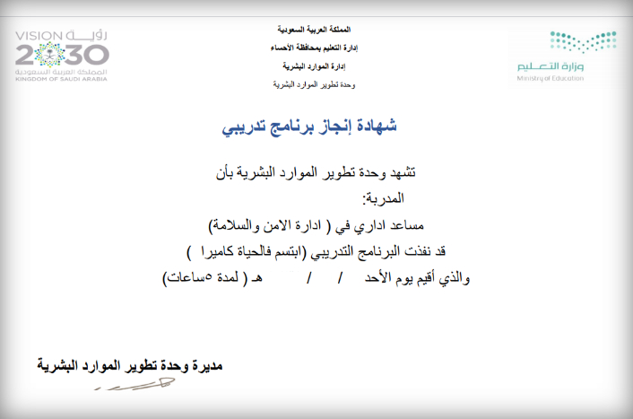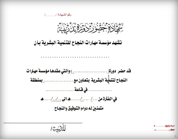 وثائق حضور الدورة جاهزة للكتابة عليها