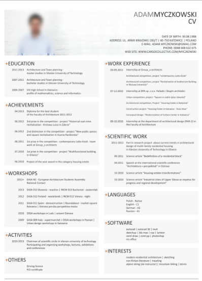 أحد أهم جوانب سيرتك الذاتية هو التصميم المثالي. يعتمد ذلك فقط على استعمال تصميم أو قالب غير لائق ، حيث يمكن للمرء أن يدمج بدقة كل العناصر السابقة ؛ قد يقلل هذا من درجة الاهتمام بملف السيرة الذاتية ؛ وهذا يعني تصميمًا مناسبًا لا يزيد عن صفحتين بخطوط واضحة وأهمية ترك مسافة كافية بين حلقات السيرة الذاتية.