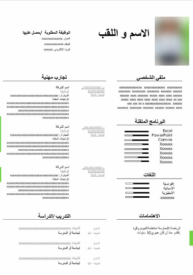 تتطلب طريقة إنشاء سيرة ذاتية للتوظيف أن يعرف الفرد أولاً الطريقة الصحيحة لكتابة سيرة ذاتية دقيقة عبر النظر لـ مجموعة باللغتين العربية والإنجليزية ، وكذلك حضور طريقة تحرير عناصر السيرة الذاتية مع الحفاظ على السمات المطلوبة. تحوي بعض افضل قوالب السيرة الذاتية الجاهزة مع قالب احترافي وتحرير دقيق ما يلي: