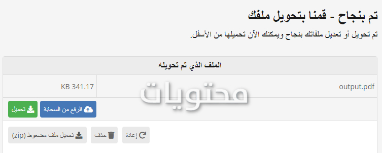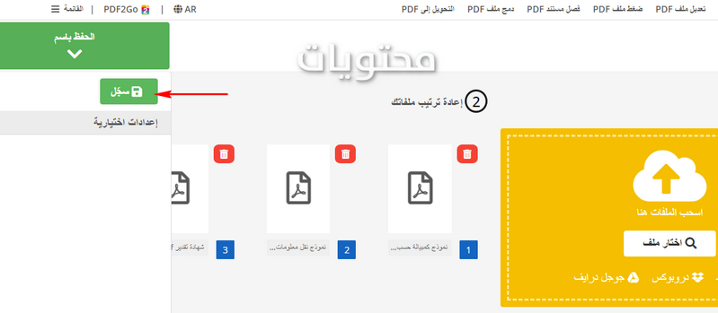 - ستظهر قائمة بالملفات التي تم تحميلها وحجم كل منها ، لـ جوار إمكانية حذف أي ملفات في القائمة قبل الدمج.