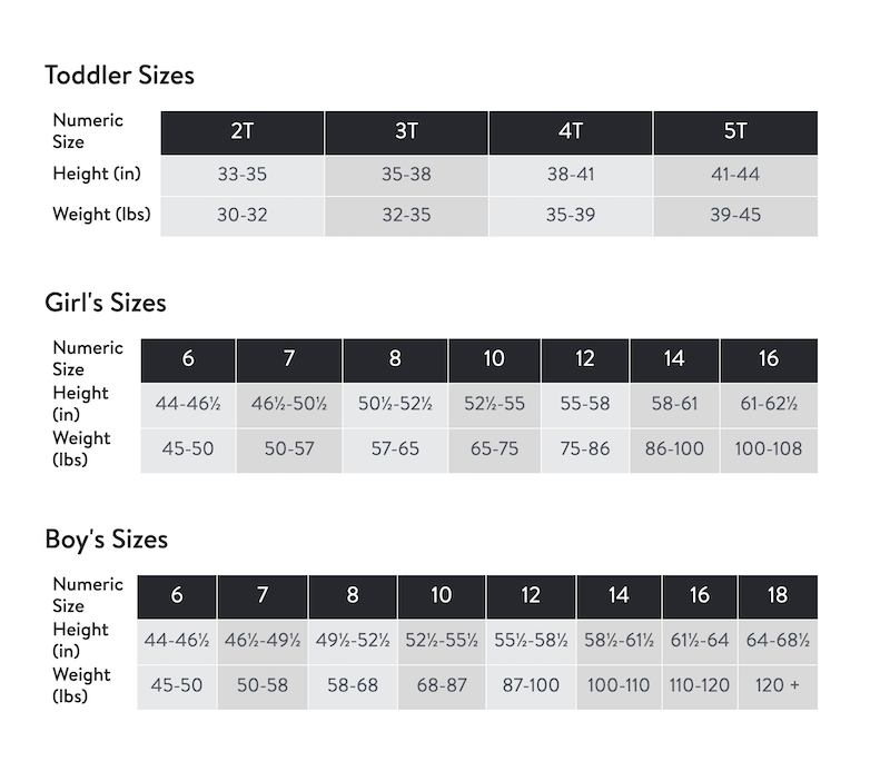 مخطط مقاسات ملابس الأطفال