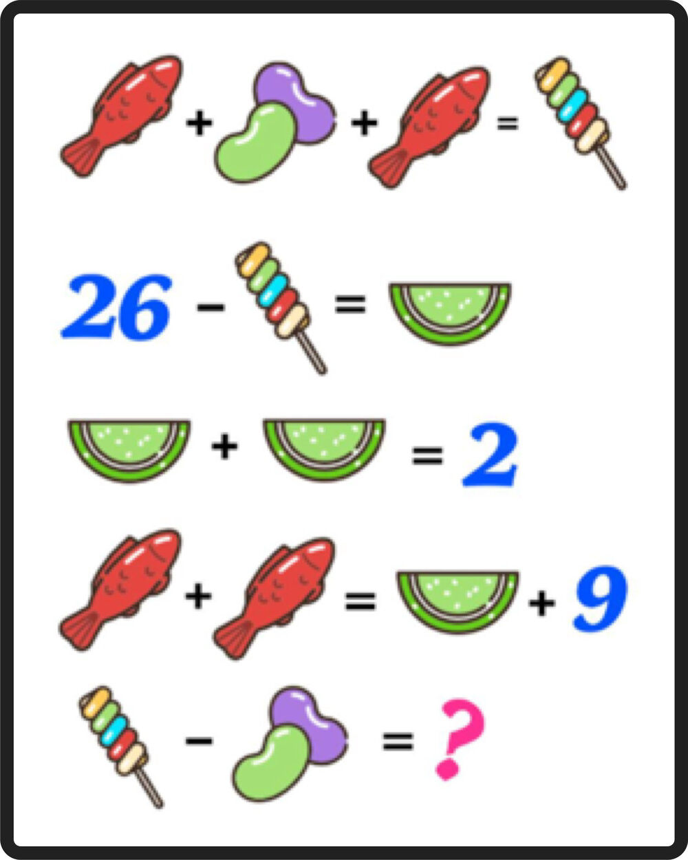 هناك مجموعة من الألغاز الرياضية التي تعتمد على قوة الملاحظة والذكاء في نفس الوقت للوصول لـ الإجابة الصحيحة ، مثل: