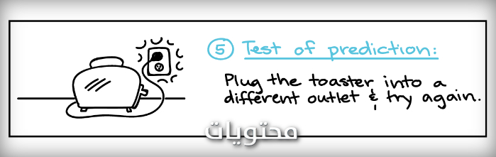 مثال: هنا ، يتم توصيل الفرن فعليًا بمصدر طاقة انتهاء لمعرفة ما إذا كانت الفرضية صحيحة والسبب وراء عدم تحميص الخبز هو قطع مصدر الطاقة.