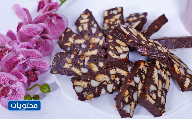 - قطّعي كعكة الشوكولاتة لـ قطع صغيرة من الكيك.
